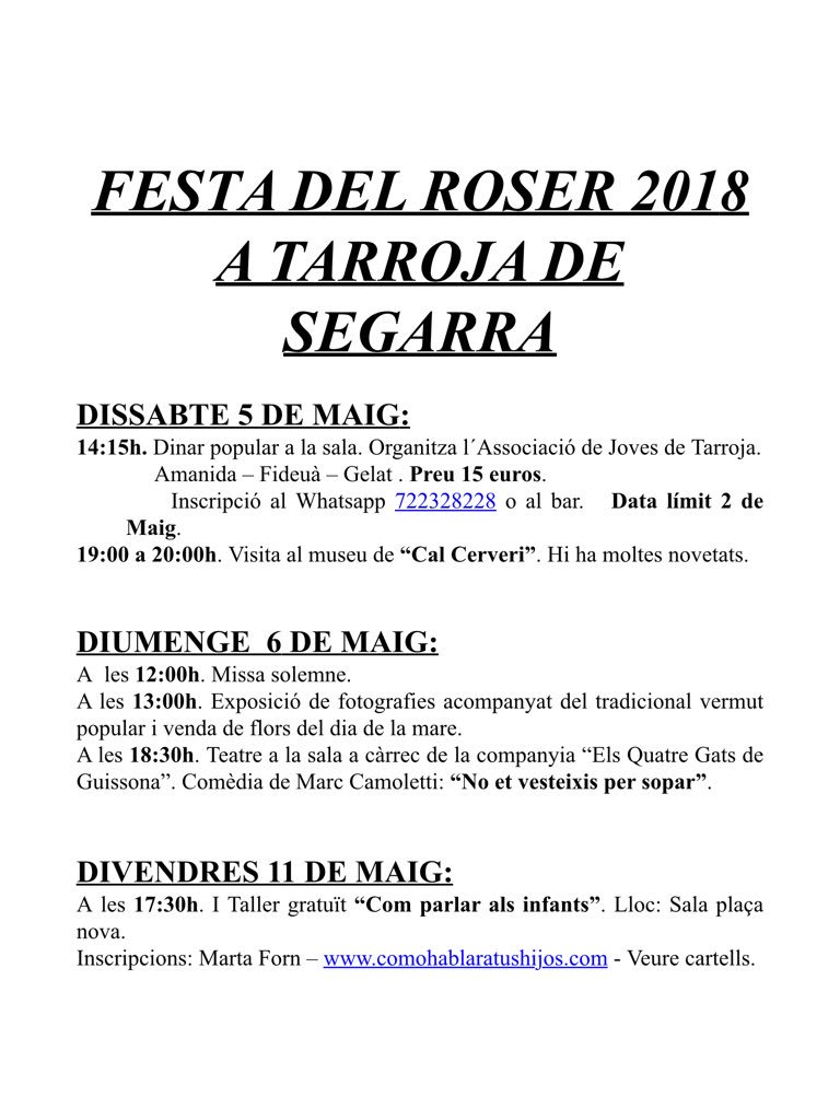 Festa del Roser / Dissabte 5 i diumenge 6 de maig / Tarroja